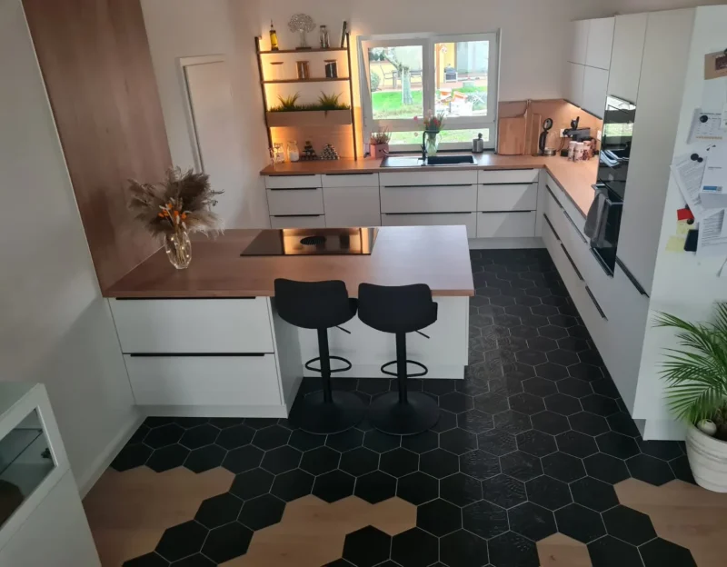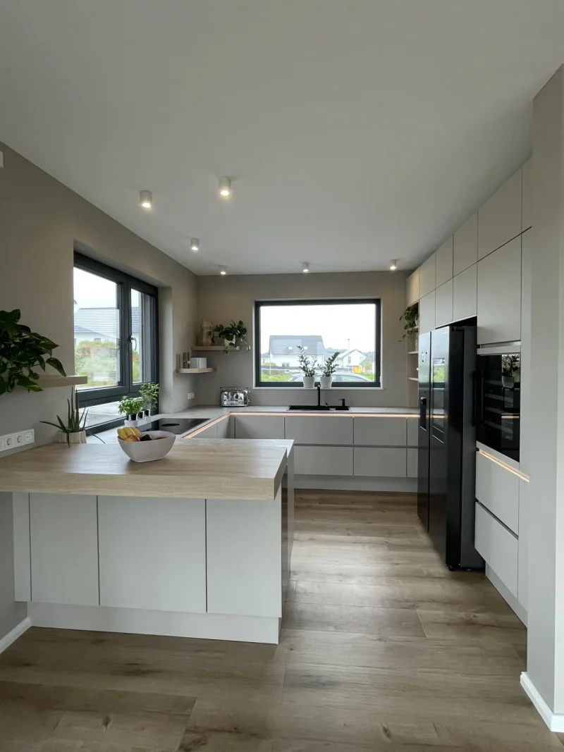 Viele Kundinnen und Kunden wünschen sich eine Küche, die nicht zu modern wirkt, aber trotzdem frisch und harmonisch bleibt. Dafür eignen sich Programme mit sanften Rahmenfronten oder dezenten Holzdekoren. Helle Töne in Kombination mit warmen Arbeitsplatten bringen eine wohnliche Leichtigkeit in den Raum, die ich besonders in Altbauwohnungen sehr schön finde.