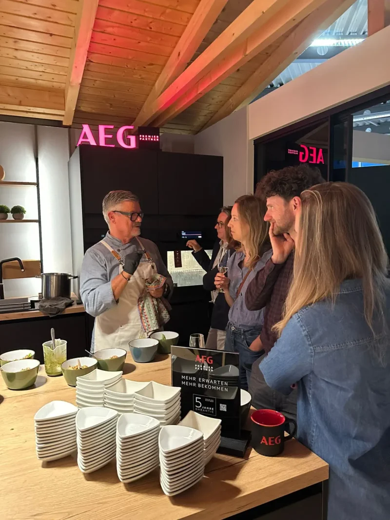 Unter dem Motto „Innovatives Kochen im edlen Design und Funktion“ verwöhnte der renommierte Koch Carsten Kuschel unsere Gäste mit einem exklusiven Live-Cooking-Erlebnis. Dabei konnten die Besucherinnen und Besucher nicht nur köstliche Speisen und erlesene Getränke genießen, sondern auch faszinierende Einblicke in moderne Connectivity-Lösungen und die Zukunft des Kochens gewinnen.
